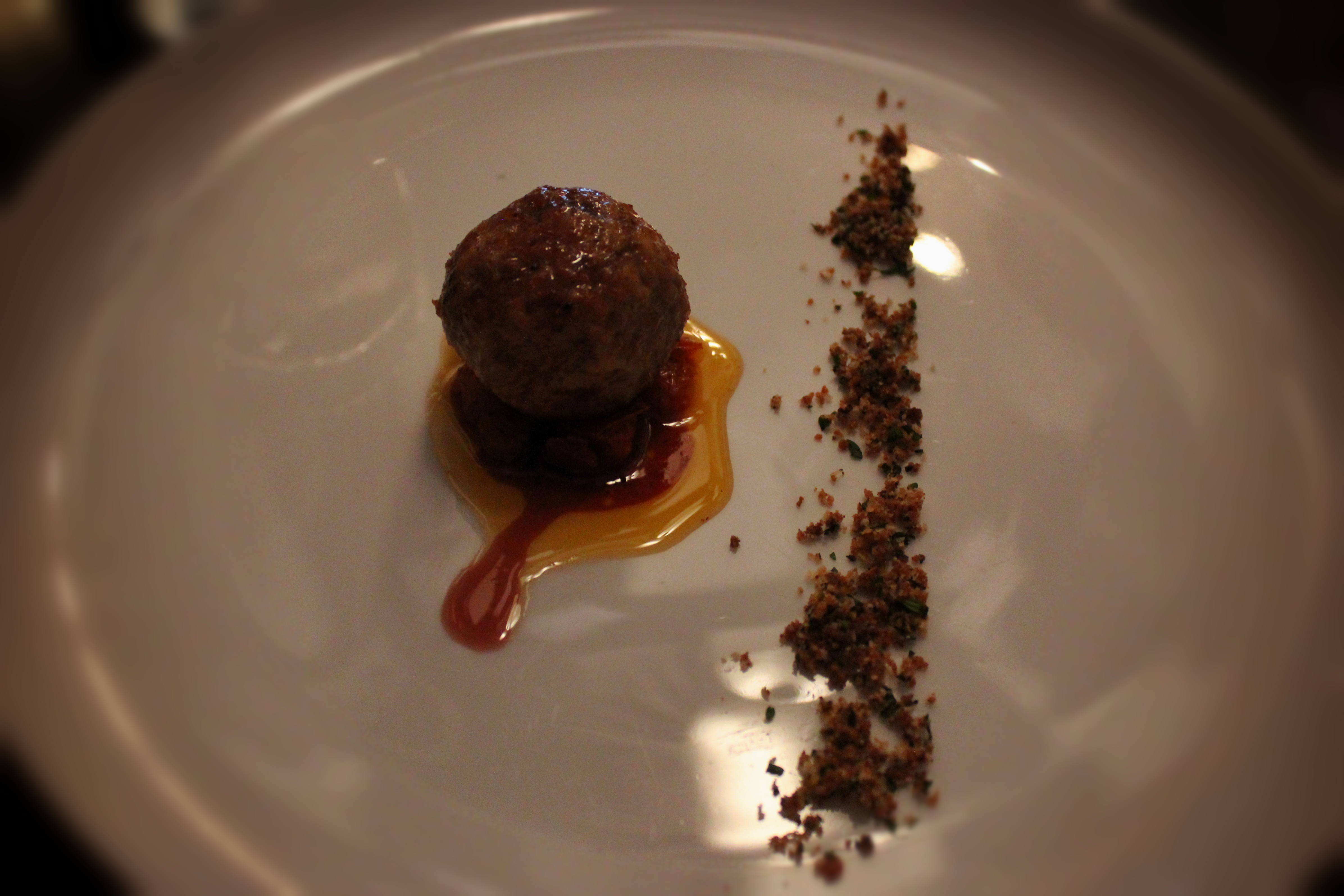 Here is the duck + chicken foie gras confit meatball: