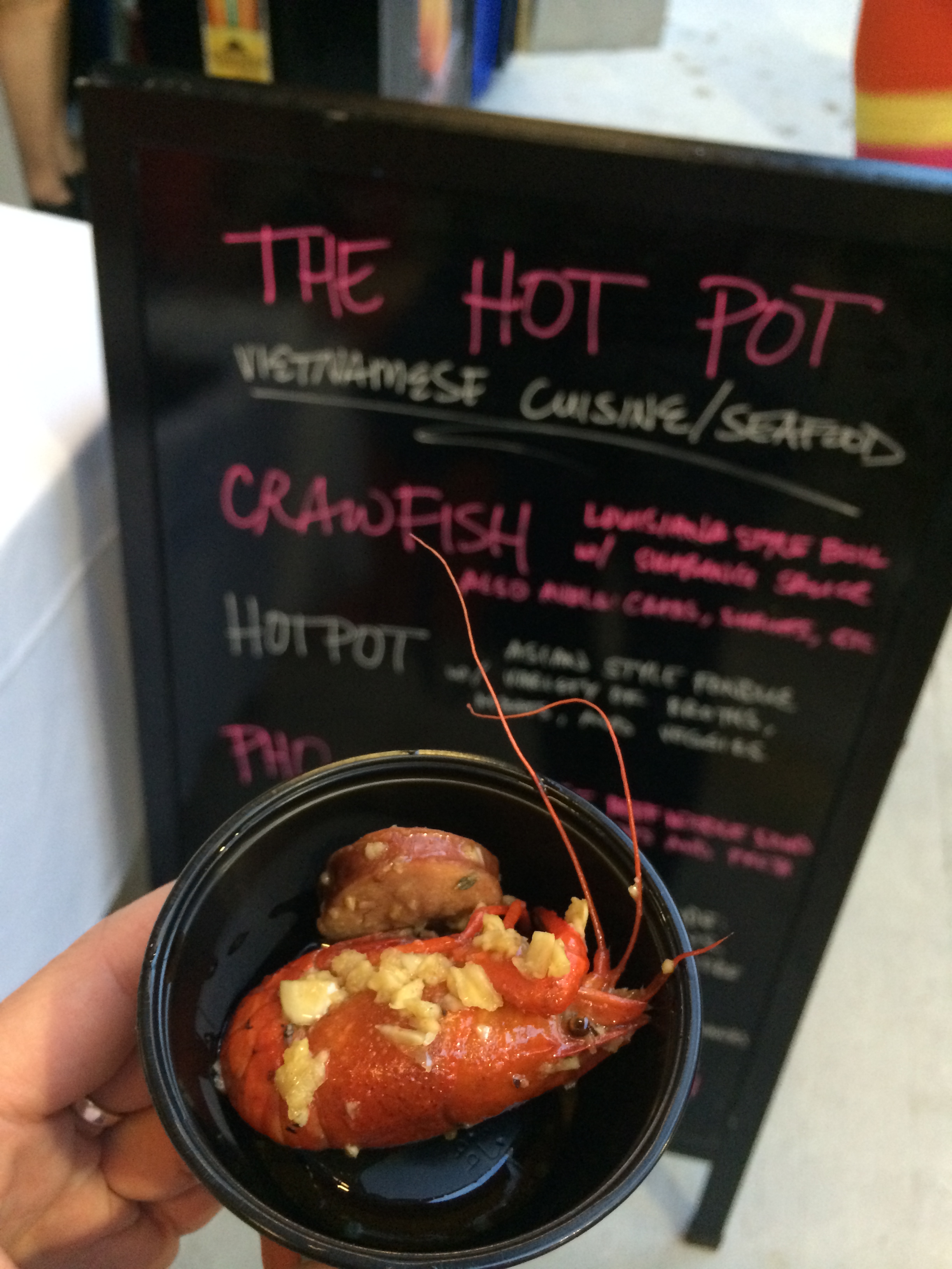 This was my first time tasting crawfish, I wasnt really sure how to eat it, so I asked. I was told to just peel it and suck the juices out. I attempted but it was tricky at this type of grab and go food situation. Kinda creepy looking.. like a cockroach lobster. Ill have to try this again some other time.