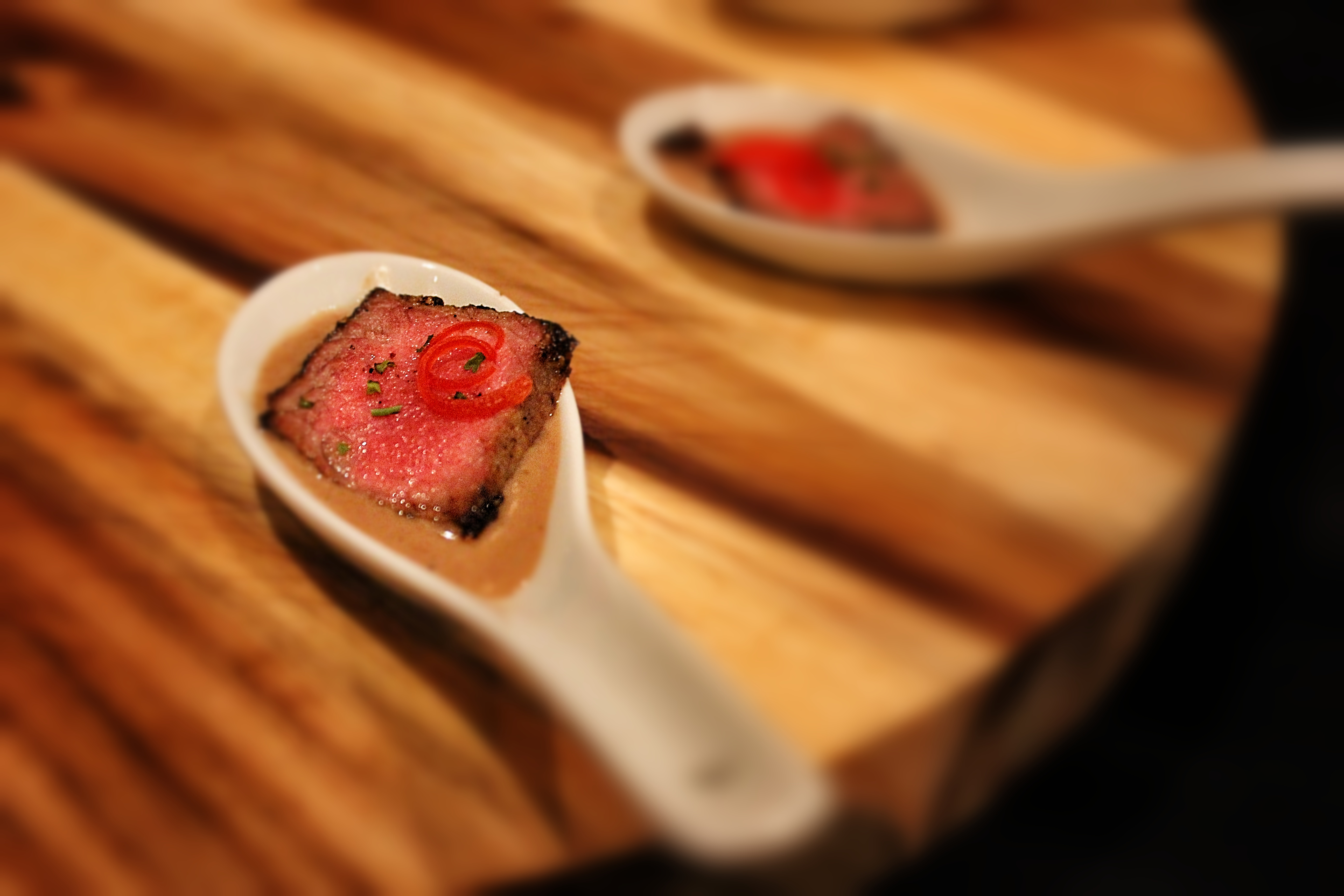 Char Roasted NY Sirloin Au Poivre Spoons (delicious)
