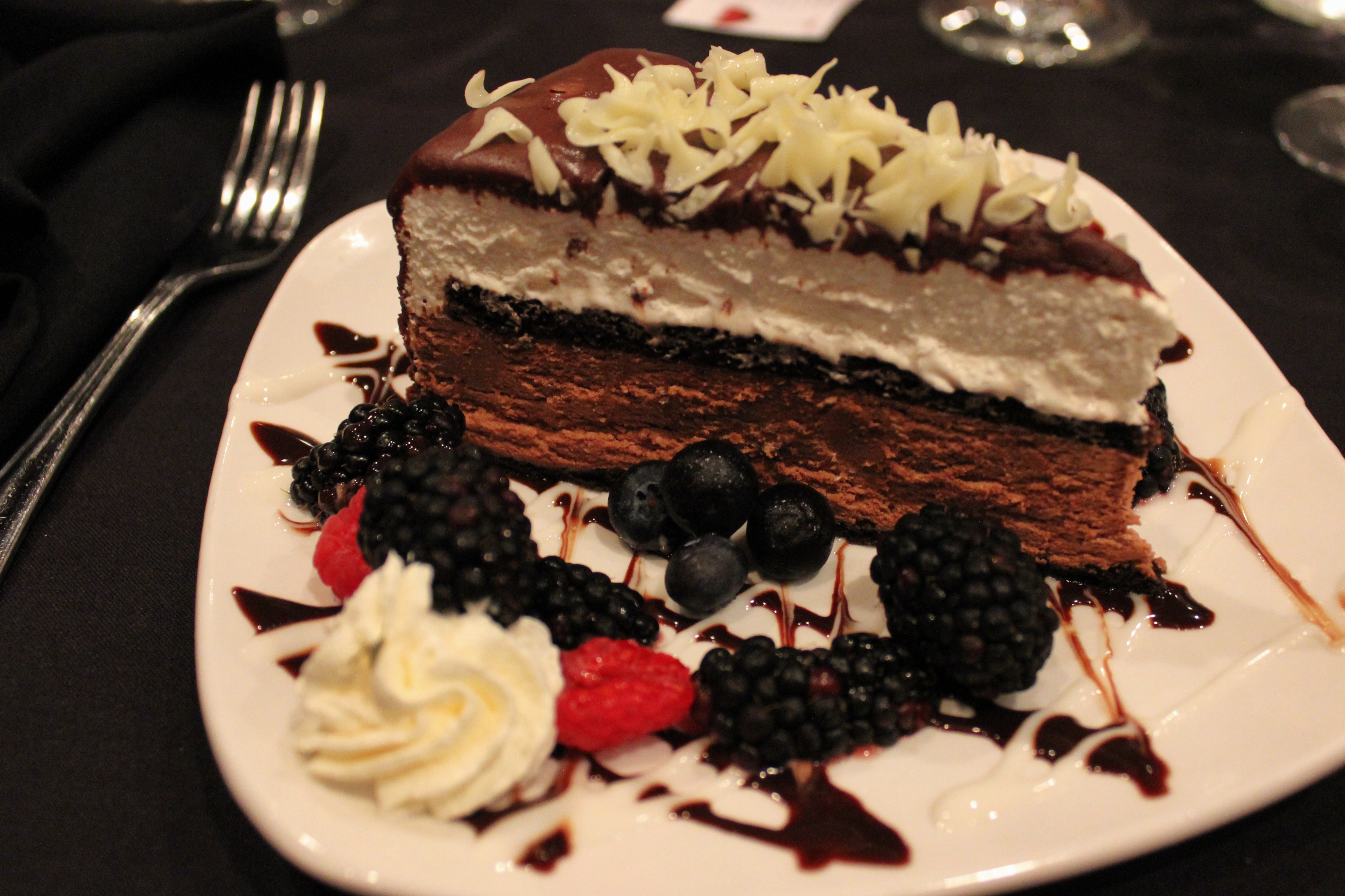 White & Dark Chocolate Mousse Cake (this was the only menu item not made in house)