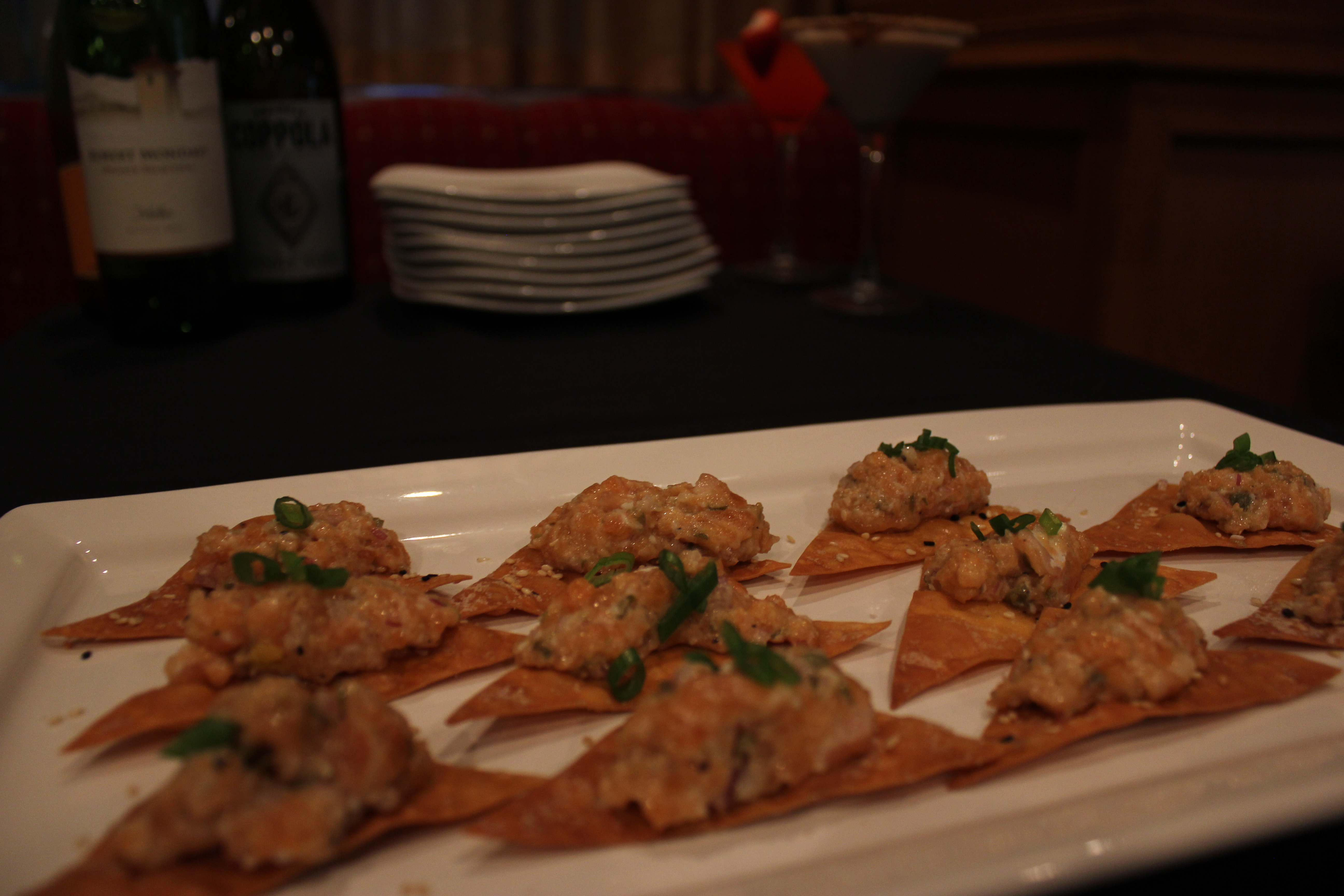 Salmon Tartar on Wonton & Sesame Crisps