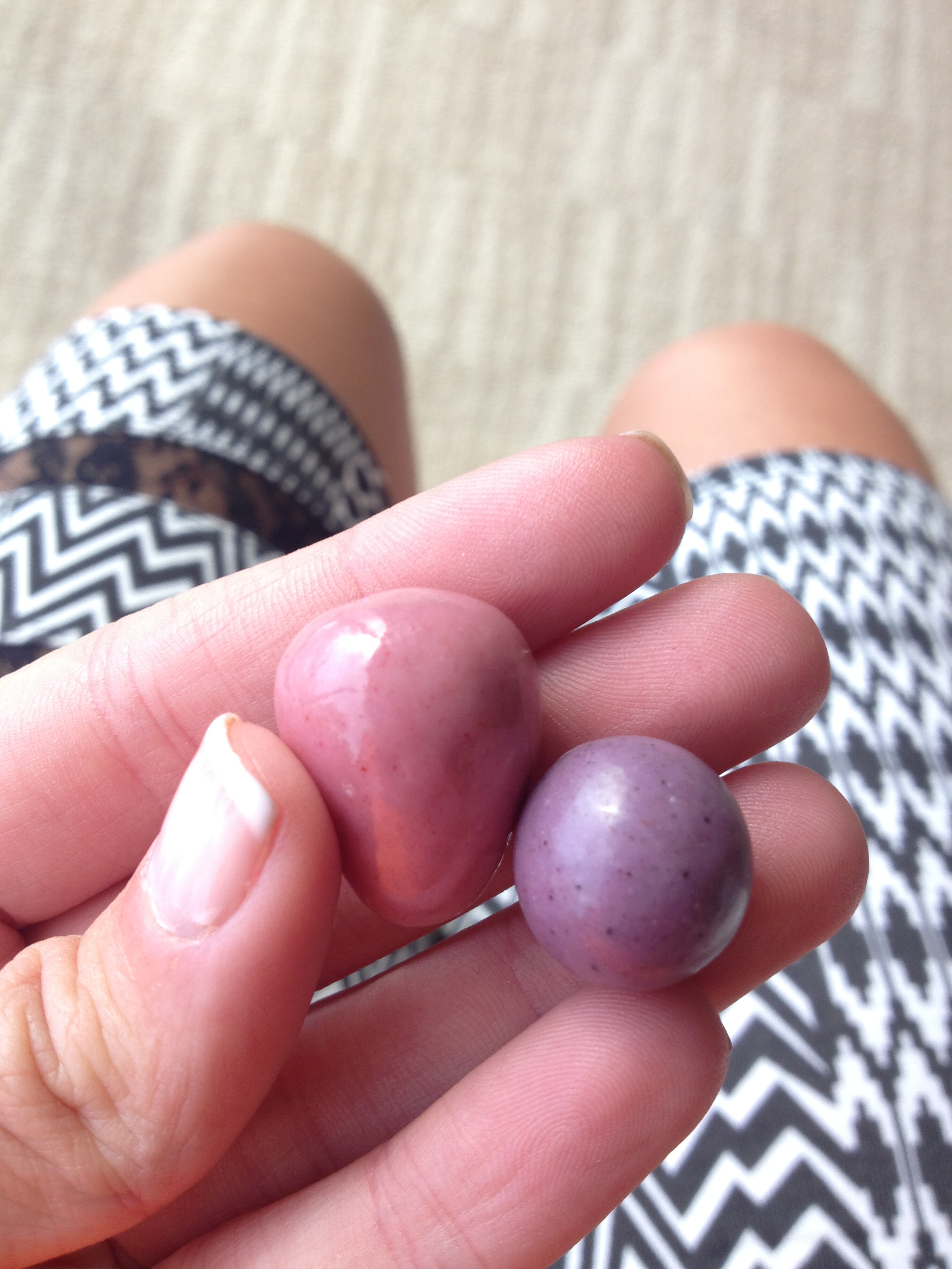 Raid the bulk bins for some yummy chocolate covered dried fruit – strawberry & blueberry 🙂