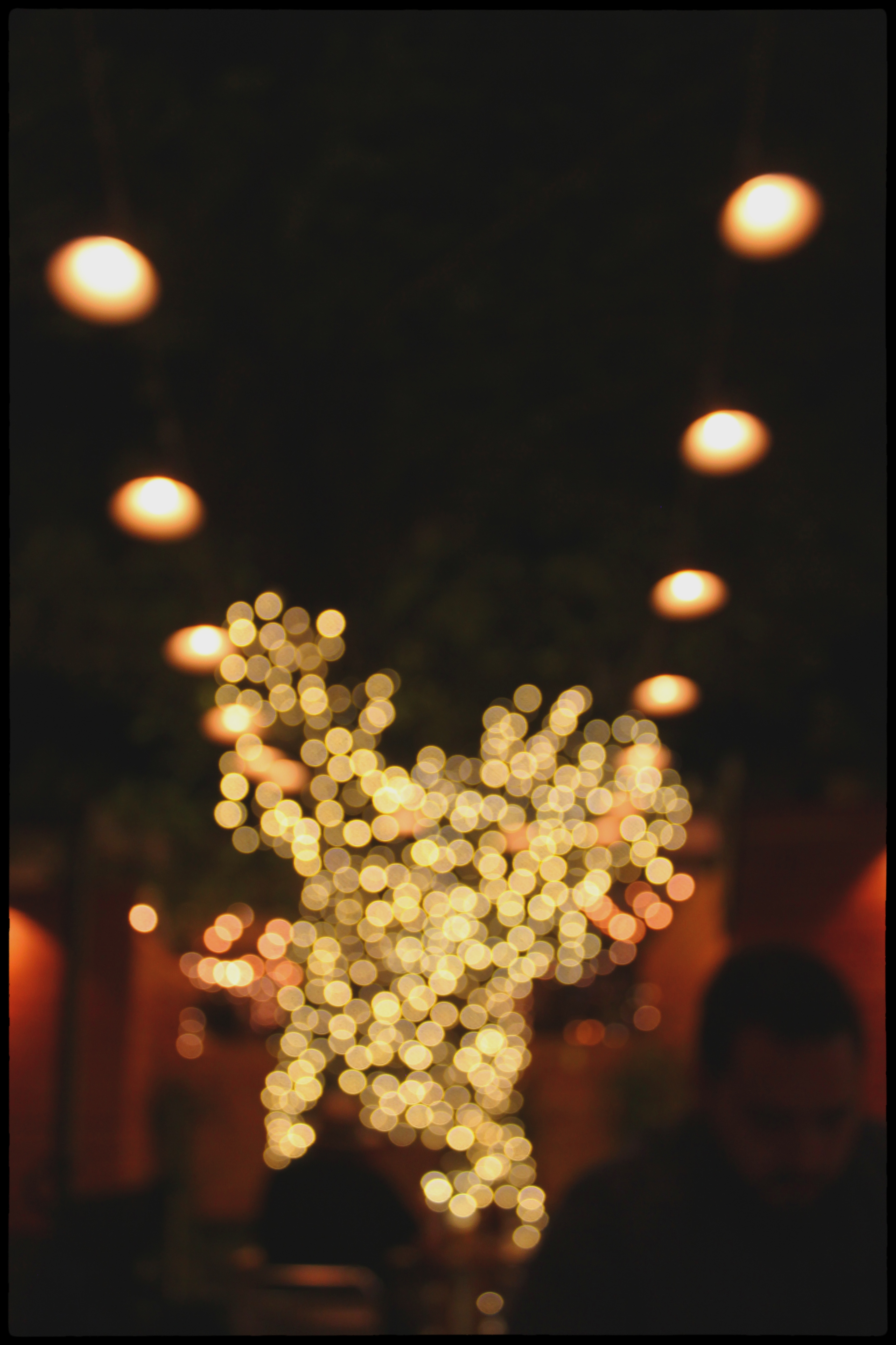 It was a relatively cool night out in South Florida, we sat outside and I took this bokeh photo of the bulb covered trees. It was nice, I enjoyed sitting out there.