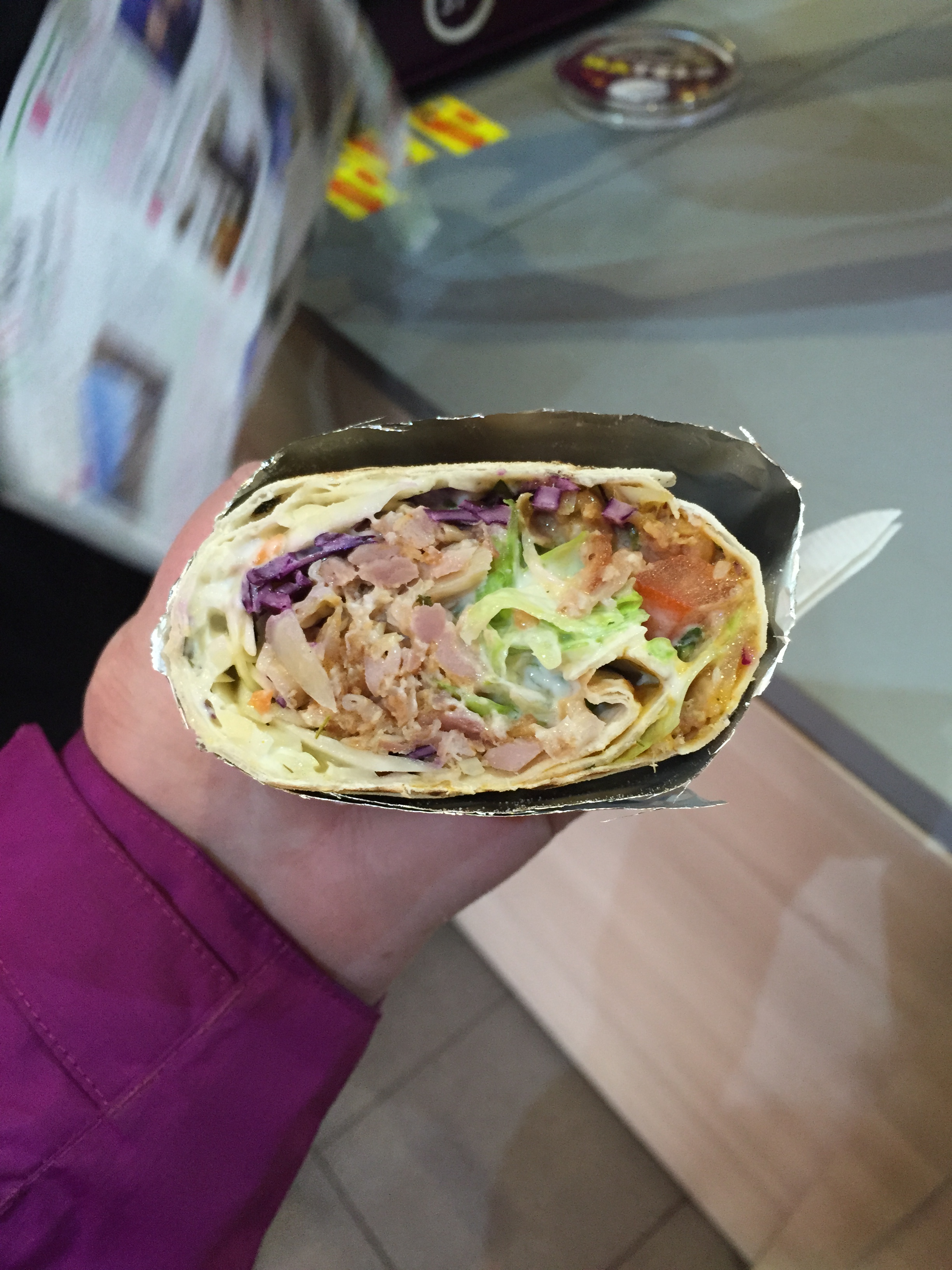 This was called a Doner Kebob, which was like a gyro. It was absolutely delicious. We were thrilled to be able to have it with chicken inside to break up the red meat. We ate it in Pilsen, Czech Republic on the walk to the brewery tour.