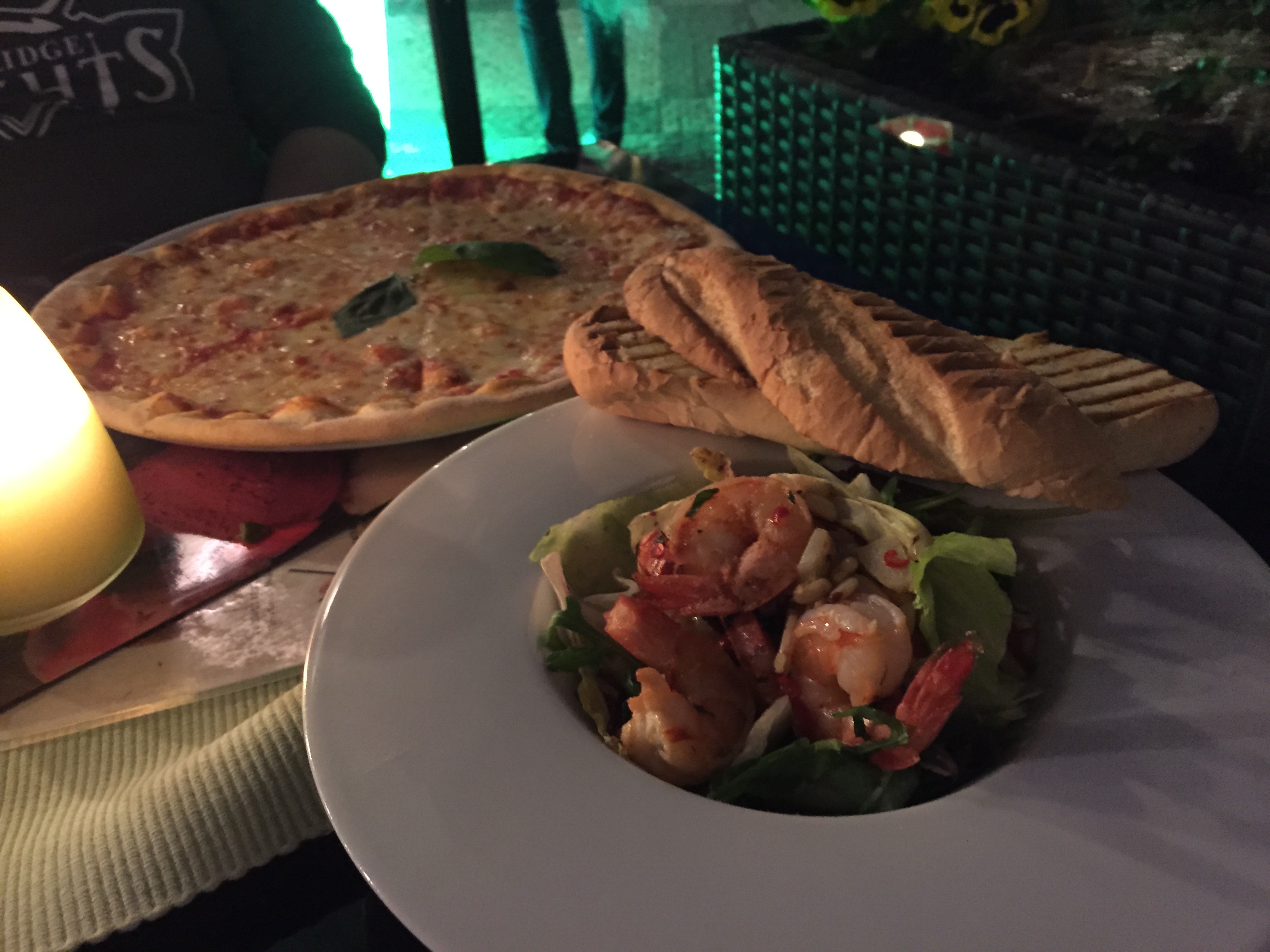 We had to use up our Czech Krouna so we wouldn’t lose money in the exchange so of course, we decided to eat. We got a shrimp salad and a personal pan pizza at the Old Town Square. We ate overlooking the Astronomical Clock. The food was way overpriced for this country but still not that bad compared to the US. It tasted good too!