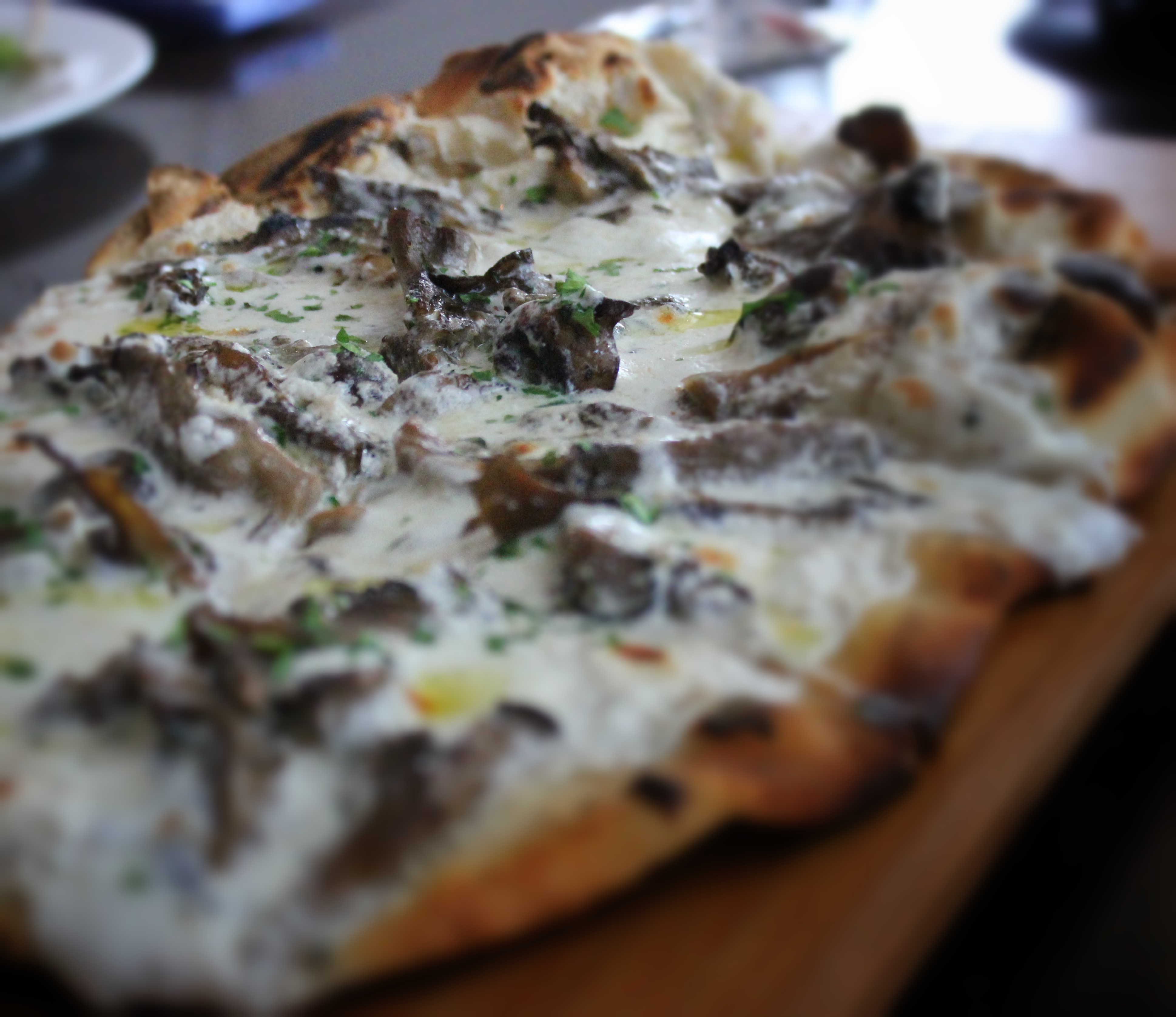 FOREST MUSHROOM FLATBREAD — parmesan cream, taleggio, truffle oil, parsley