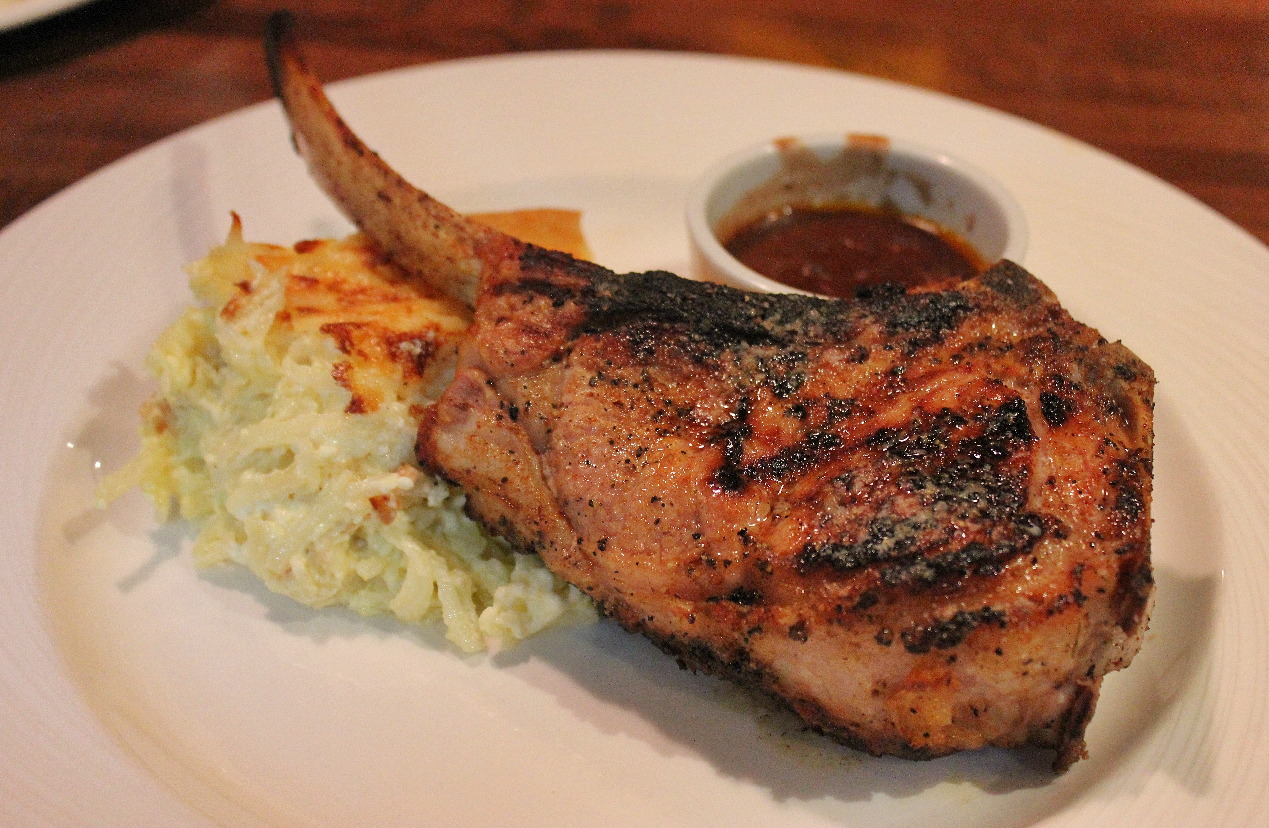14 oz Tomahawk Bone in Veal Chop served with Parmesan Potato Gratin.
